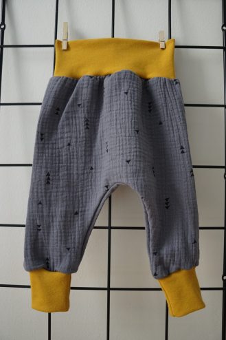 Ich nähe ja immer am liebsten für Neugeborene. Es ist immer ein schönes selbst gemachtes Geschenk, über das sich bisher immer alle sehr gefreut haben. Und wieder haben liebe Freunde eine kleine Tochter bekommen und ich wollte für sie unbedingt eine Hose aus dem Stoff nähen, den ich schon vor Ewigkeiten mal gekauft habe. Es ist eher ein Leinenstoff, mal kein Jersey.